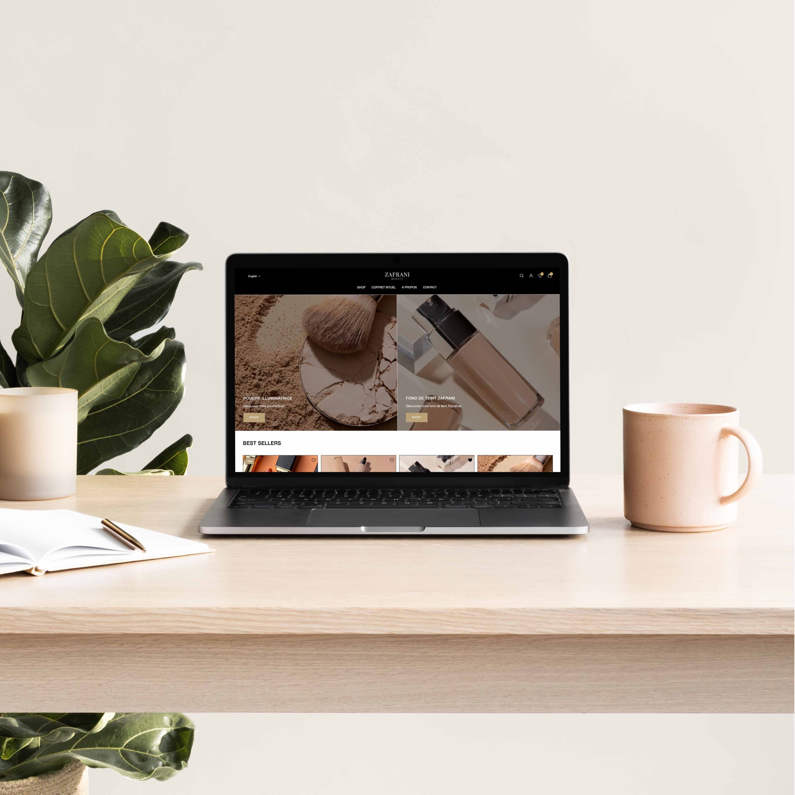 Cette maquette a ensuite été intégrée sur Shopify avec comme base le thème Aurora.